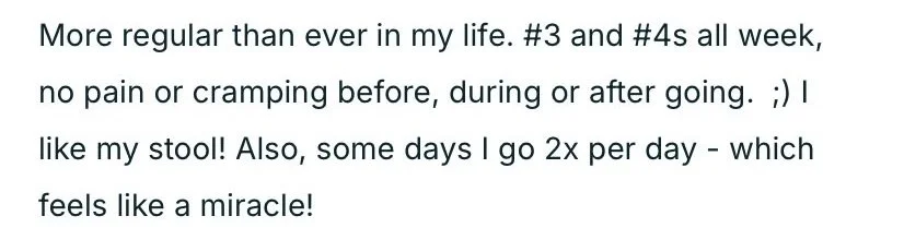 Her knowledge, compassion, and thoughtful approach made all the difference. Together, we created simple yet effective rituals that completely transformed my digestion. I’m now bloat- and constipation-free and feel confident in how to care for my body—even when unexpected food challenges arise.